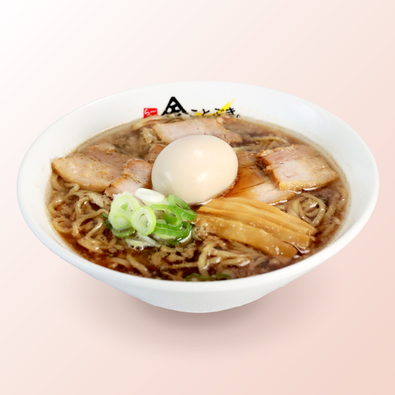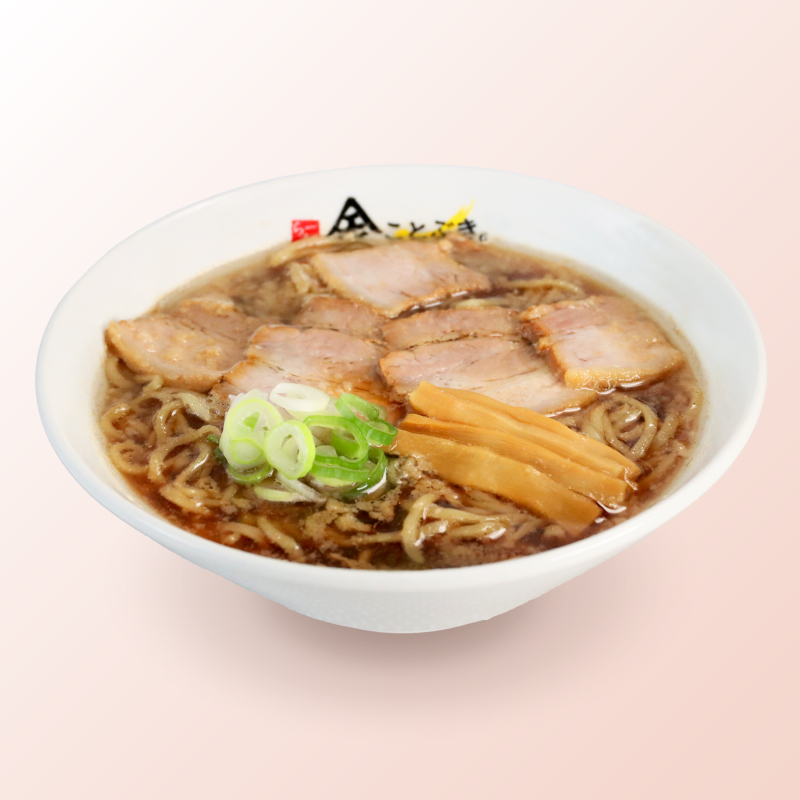 3種の醤油をブレンドしたスープのコクとキレがとろ豚を引き立てる 漆黒のらー麺