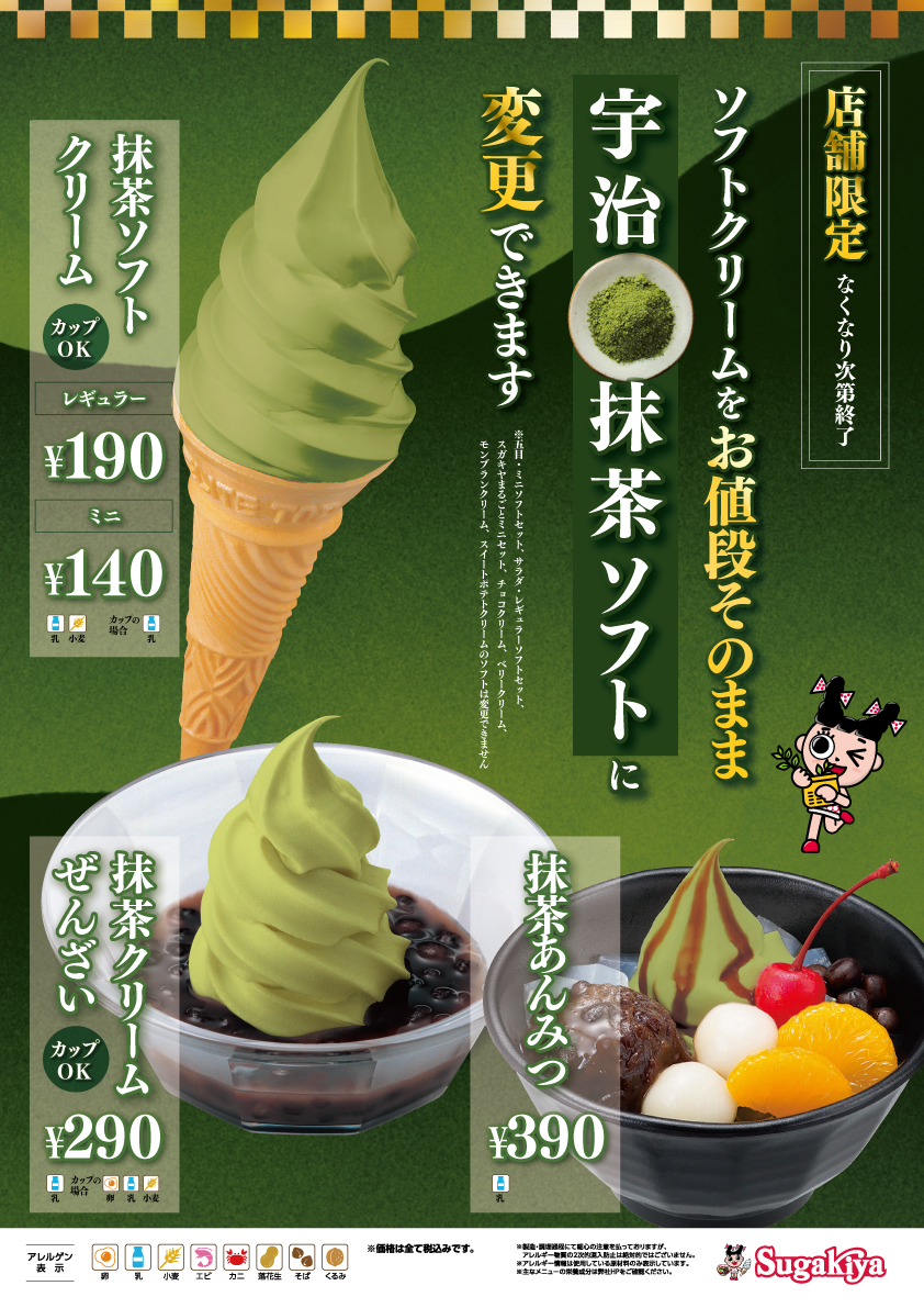 【スガキヤ一部店舗限定】10月30日(木)より期間限定でソフトクリームを「宇治抹茶ソフト」に変更できます!