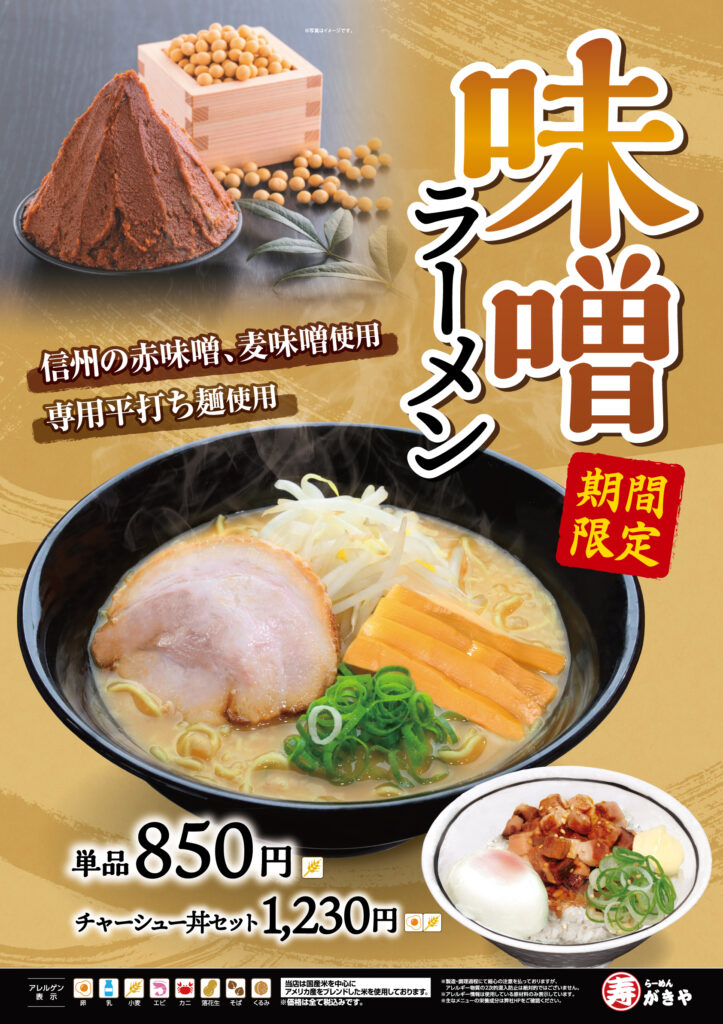 寿がきやでは2025年11月27日(木)より、「味噌ラーメン」を販売いたします。