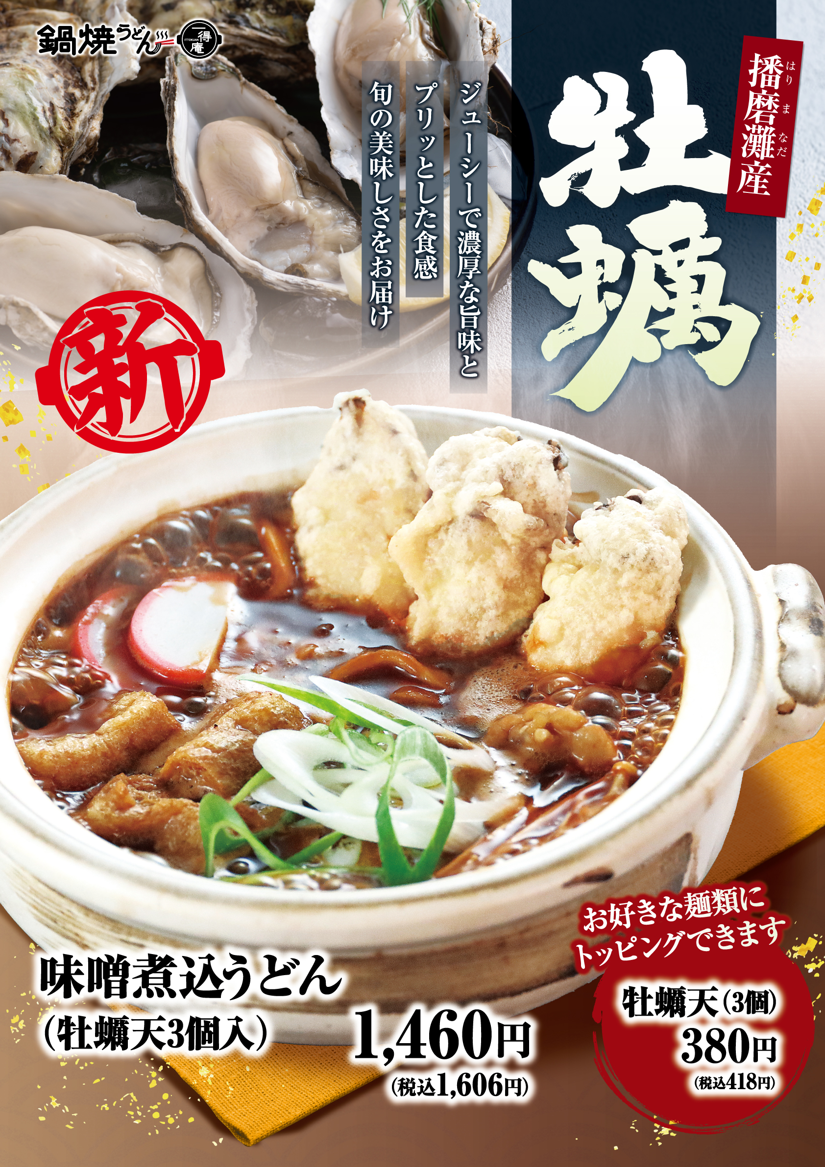 【鍋焼うどん 一得庵】12月4日(木)より冬の味覚「牡蠣天」をトッピングが登場!