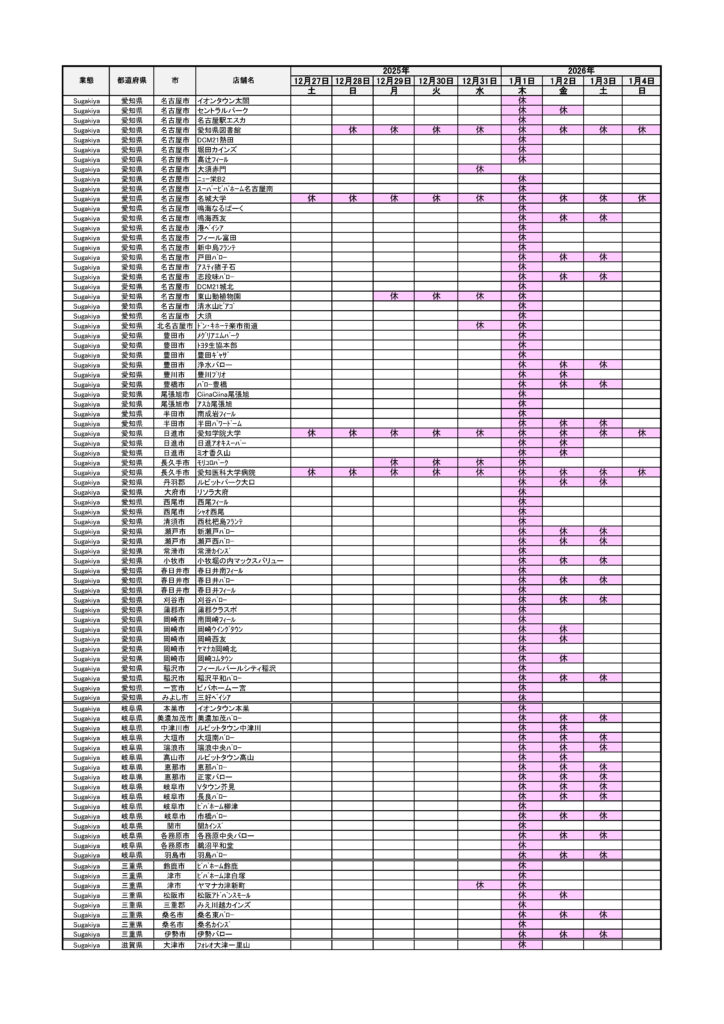 休業期間:2025年12月27日(土)〜2026年1月4日(日)