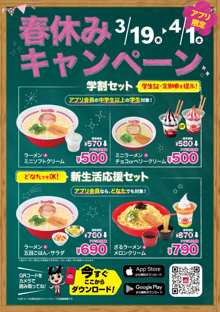 【スガキヤ】3月19日(木)より「ざるラーメン」「メロンクリーム」「メロン氷」を期間限定販売!アプリでお得な春休みキャンペーンも!