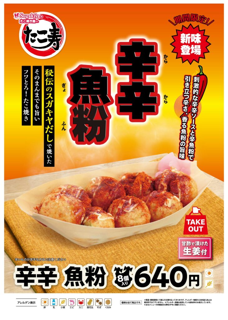 【たこ寿】4月9日(木)より刺激的な新味「辛辛 魚粉(からから ぎょふん)」期間限定で販売開始!