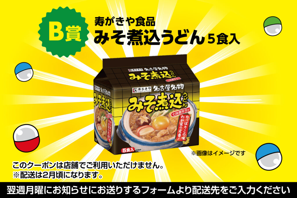 B賞:寿がきや食品 みそ煮込うどん5食入
