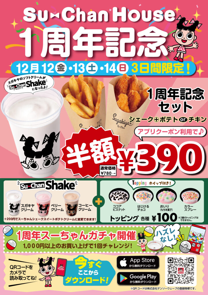 【スーちゃんハウス】12月12日(金)から1周年記念キャンペーンを開催!