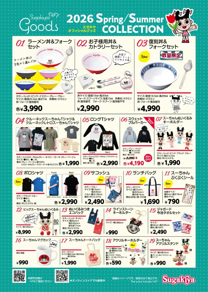 スガキヤでは、スガキヤグッズの新アイテムが2026年4月9日(木)より一部店舗で販売となります。なお、店舗での発売に合わせてオンラインストアでも発売を開始いたします。